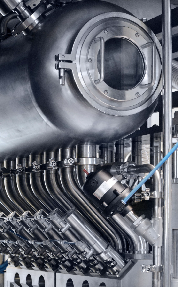 Hygienic design of the filler in order to eliminate product residue accumulation, according to EU safety standards.